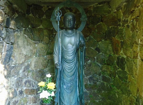 法然院の本堂脇、山崖を切り開いた岩室内に安置されている青銅造地蔵菩薩立像