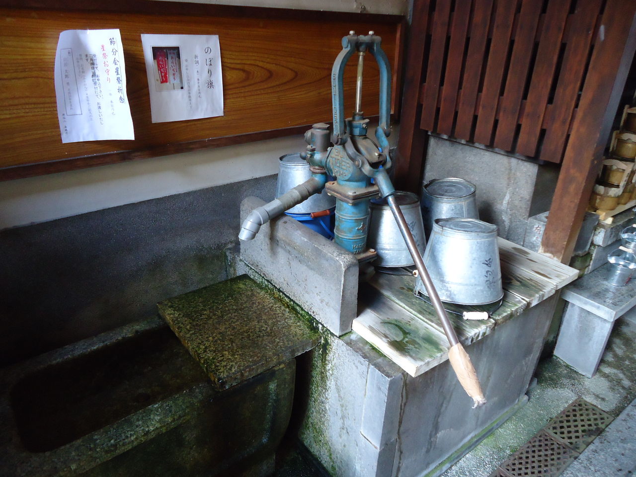 江戸中期につくられたとされる「初代」は、回しすぎて磨り減ってしまったそうです。二代目の背後の格子戸の中にあります。